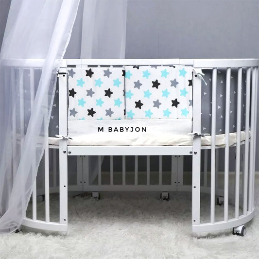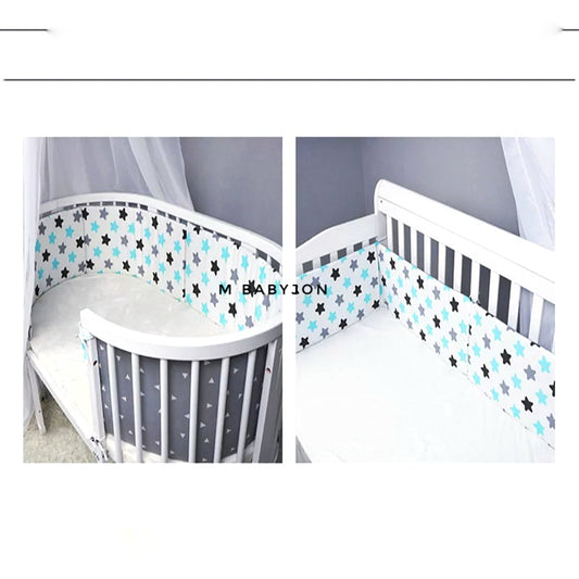 Grey Crib Bumper With Stars In Cotton - Safe Liner Pads